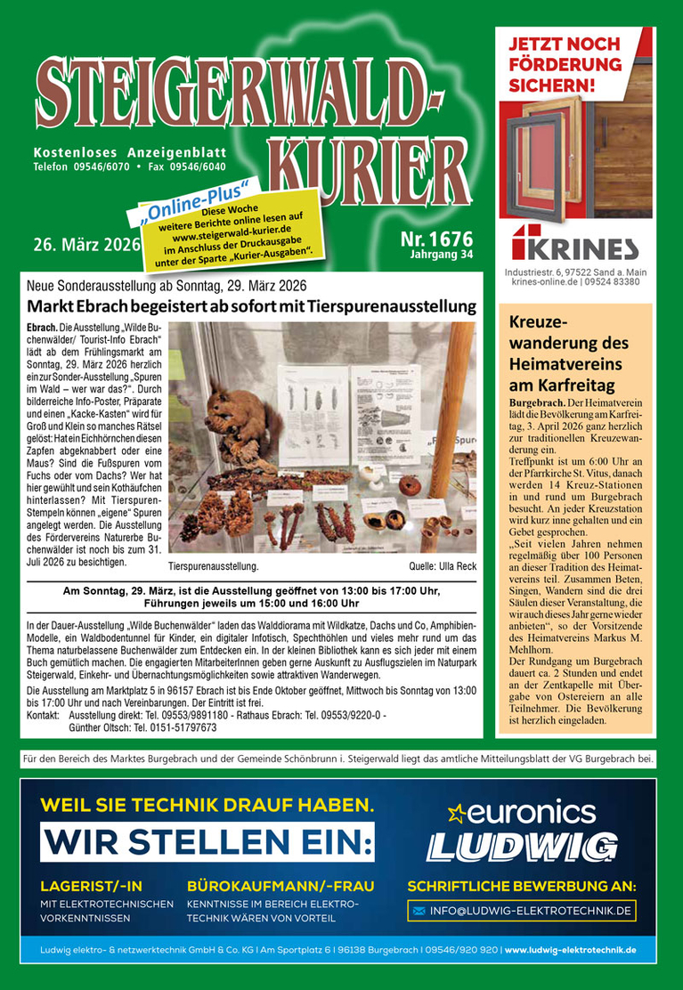 Markt Ebrach begeistert ab sofort mit Tierspurenausstellung20.03.2026