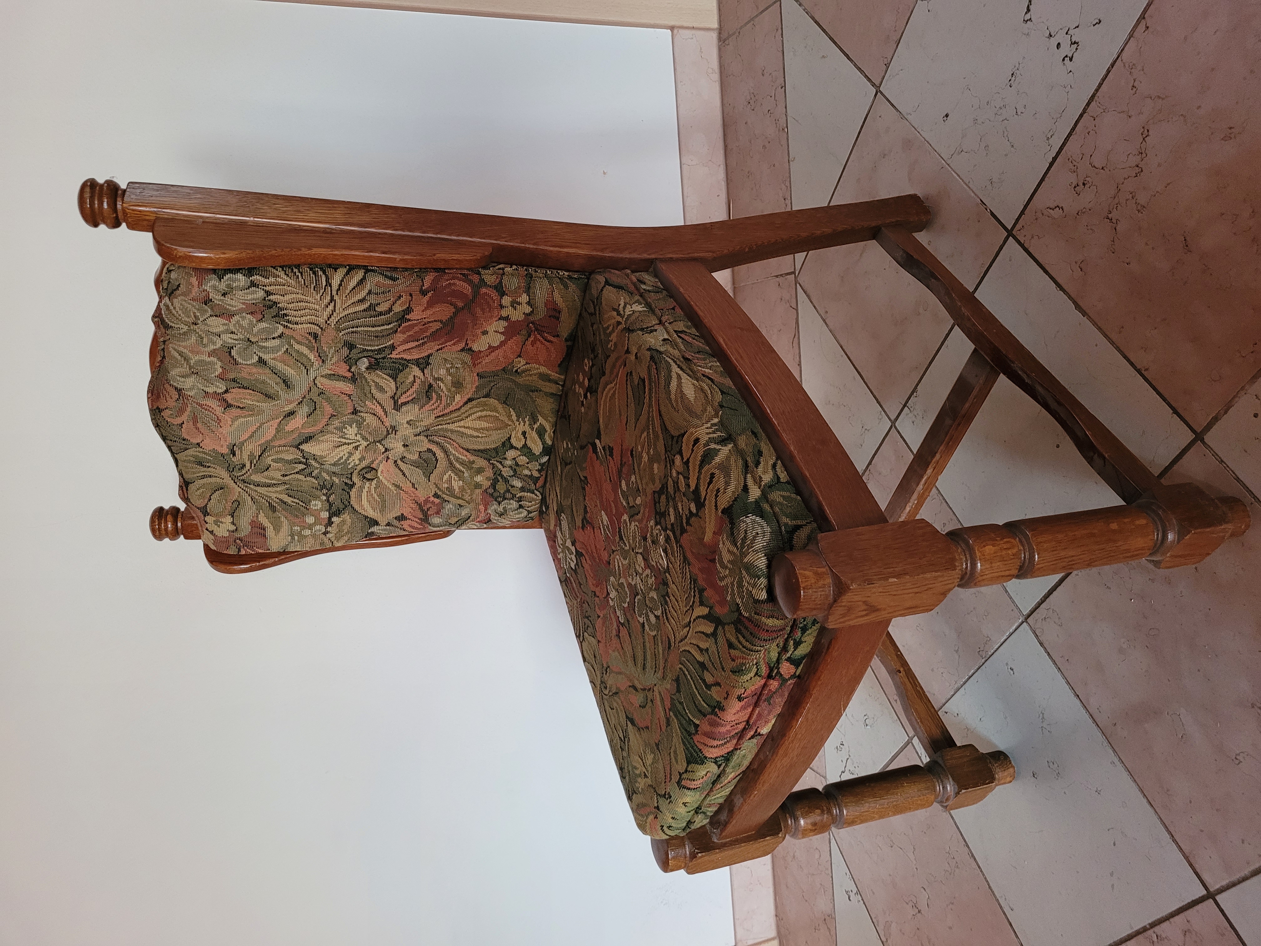 dunkelbraun, sechseckig, ausziehbar, Seitenlänge 68 cm, Höhe 74 cm, mit 6 gepolsterten Stühlen, wenig gebraucht, Selbstabholung. Tel. 09554/1596