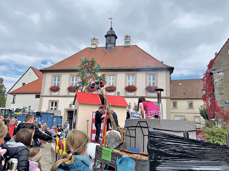 Am Samstag, 4. Oktober, wird um 15:00 Uhr der Kirchweihbaum am Marktplatz aufgestellt. Musikalische Unterstützung bietet dabei die Mönchherrnsdorfer Blasmusik.