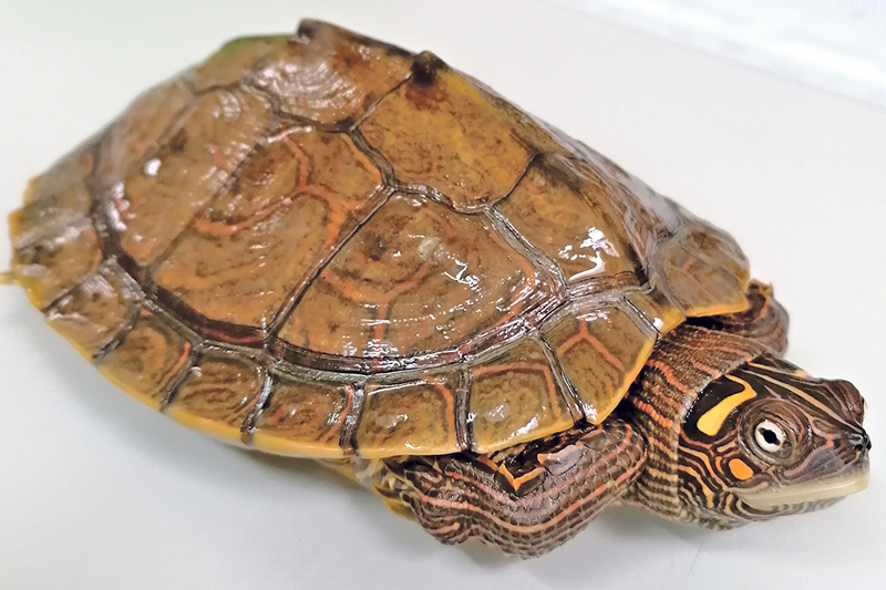 Bamberg. Cookie ist ein sehr hübsches Mädchen, sie hat eine sehr auffällige Zeichnung mit orangefarbenen Akzenten. Als Höckerschildkröte fühlt sie sich im Aquarium mit Wärmelampe am Wohlsten. Wenn es im Sommer schön warm ist, hat Cookie nichts gegen einige Wochen im Gartenteich einzuwenden. Die Panzerlänge beträgt derzeit ca. 15 cm.