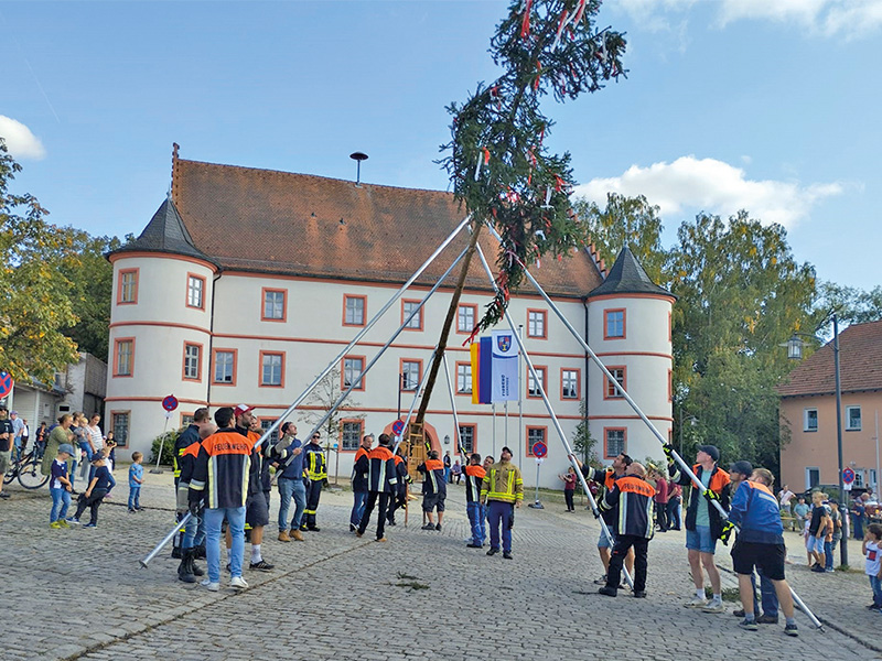 Am Samstag, 4. Oktober, wird traditionell gegen 15:00 Uhr der Kirchweihbaum am Schlossplatz mit musikalischer Umrahmung aufgestellt.