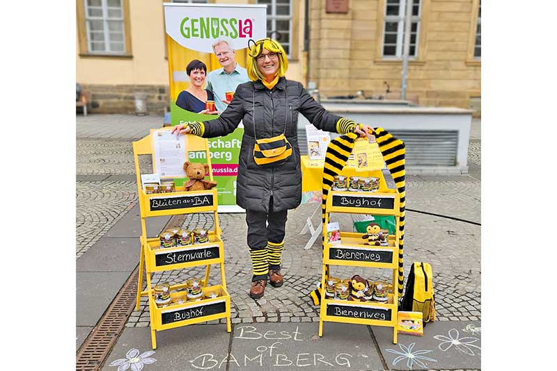 Bamberg. Der Bamberger Honigmarkt, der seit 1873 nachgewiesen ist, findet traditionell am Faschingsdienstag, 4. März 2025 von 8:00 bis 12:00 Uhr auf dem Maximiliansplatz statt. Neben Honig in allen Farben, Konsistenzen und Sorten halten so manche Verkaufsstände auch Kerzen, Propolis, Pollen und Honigbonbons parat. Die Initiative Bienen-leben-in-Bamberg.de bietet neben ihrem Bamberger Lagenhonig auch Informationen zu Klassenführungen und Imkerkursen durch die Bamberger Schulbiene an und berät zu Fragen rund um Bienen, Honig und die Imkerei. Foto: Privat