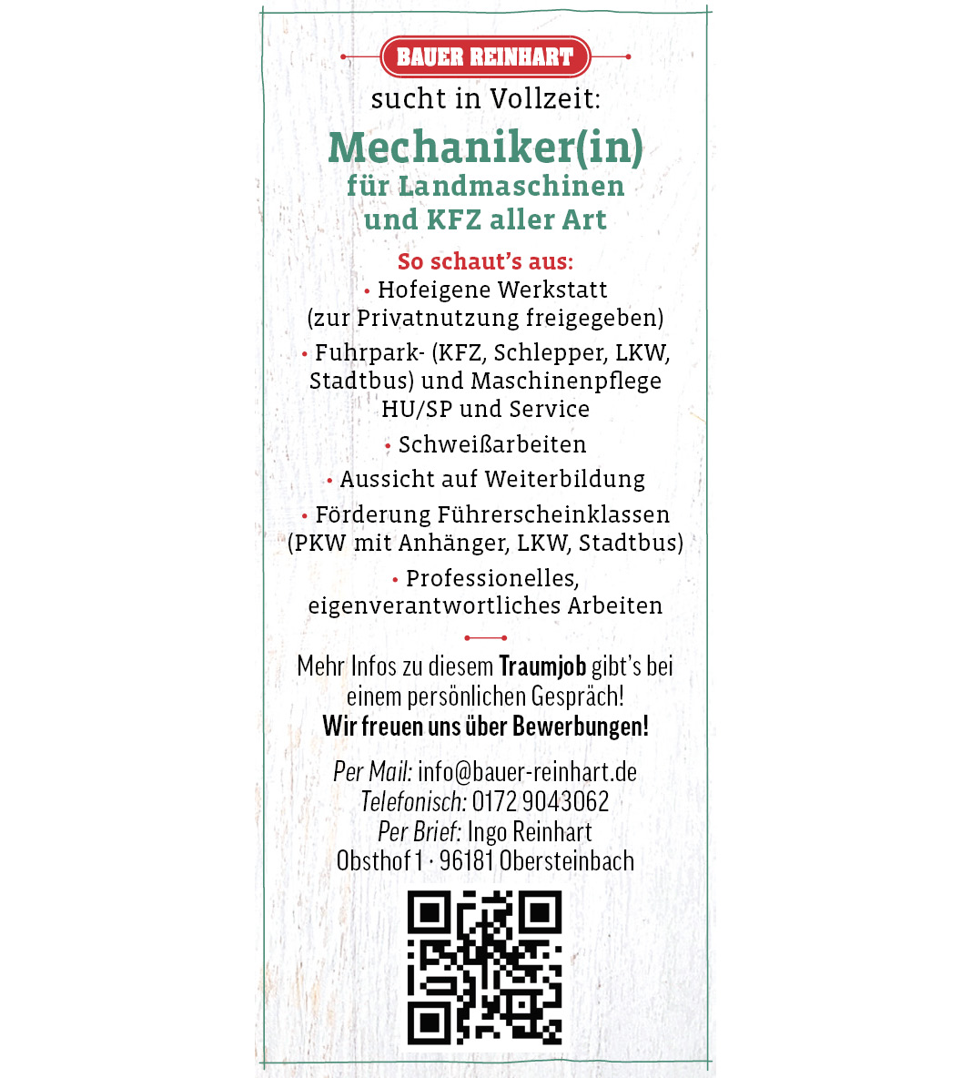 Mechaniker(in) für Landmaschinen und KFZ aller Art