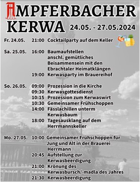 Die Kerwasburschen und -madla Ampferbach/Dietendorf laden zur Kerwa am 24./25. 5. 24 ein: