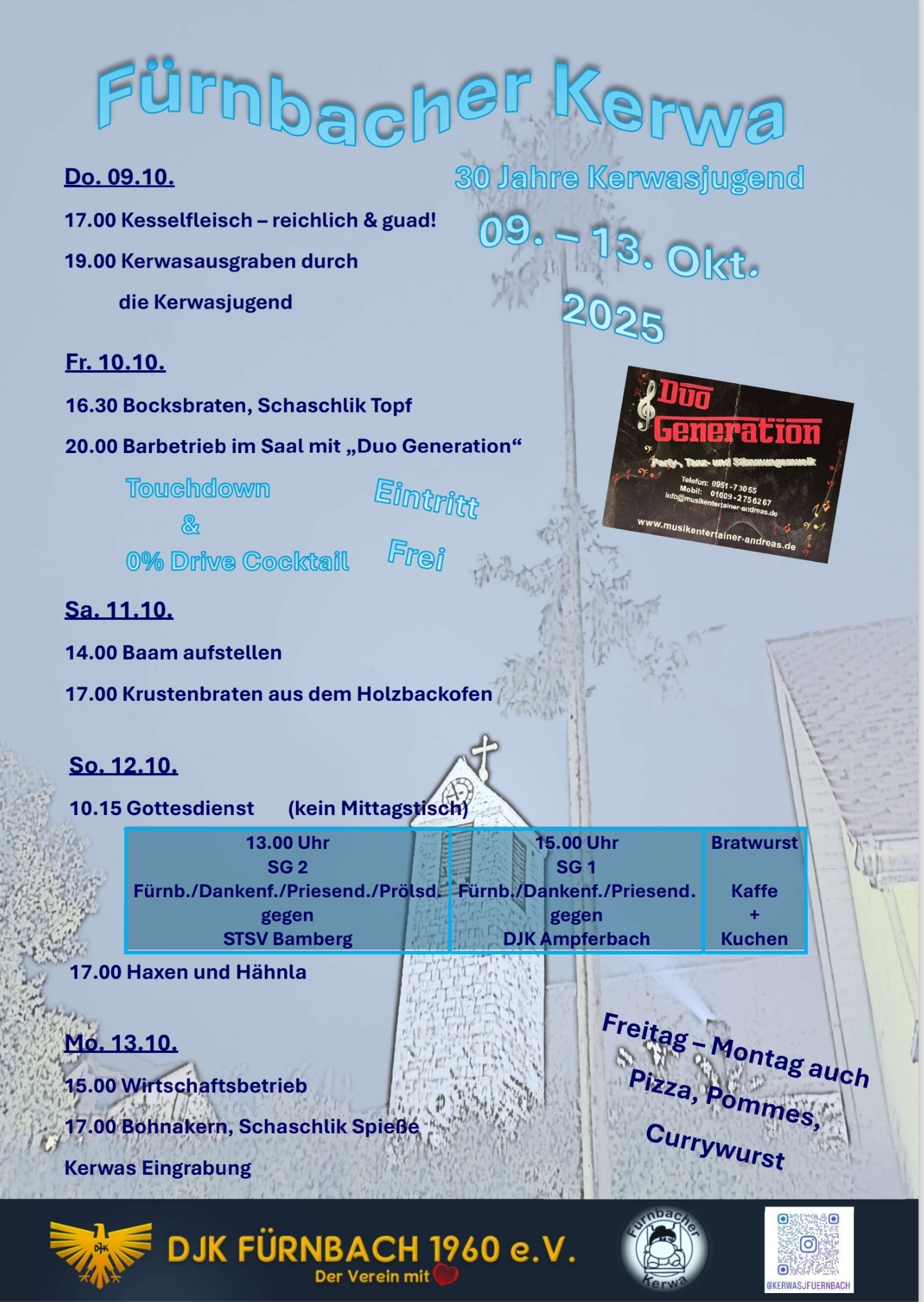 Fürnbach lädt vom 9. 10. - 13. 10. 25 zur Kirchweih ein.
