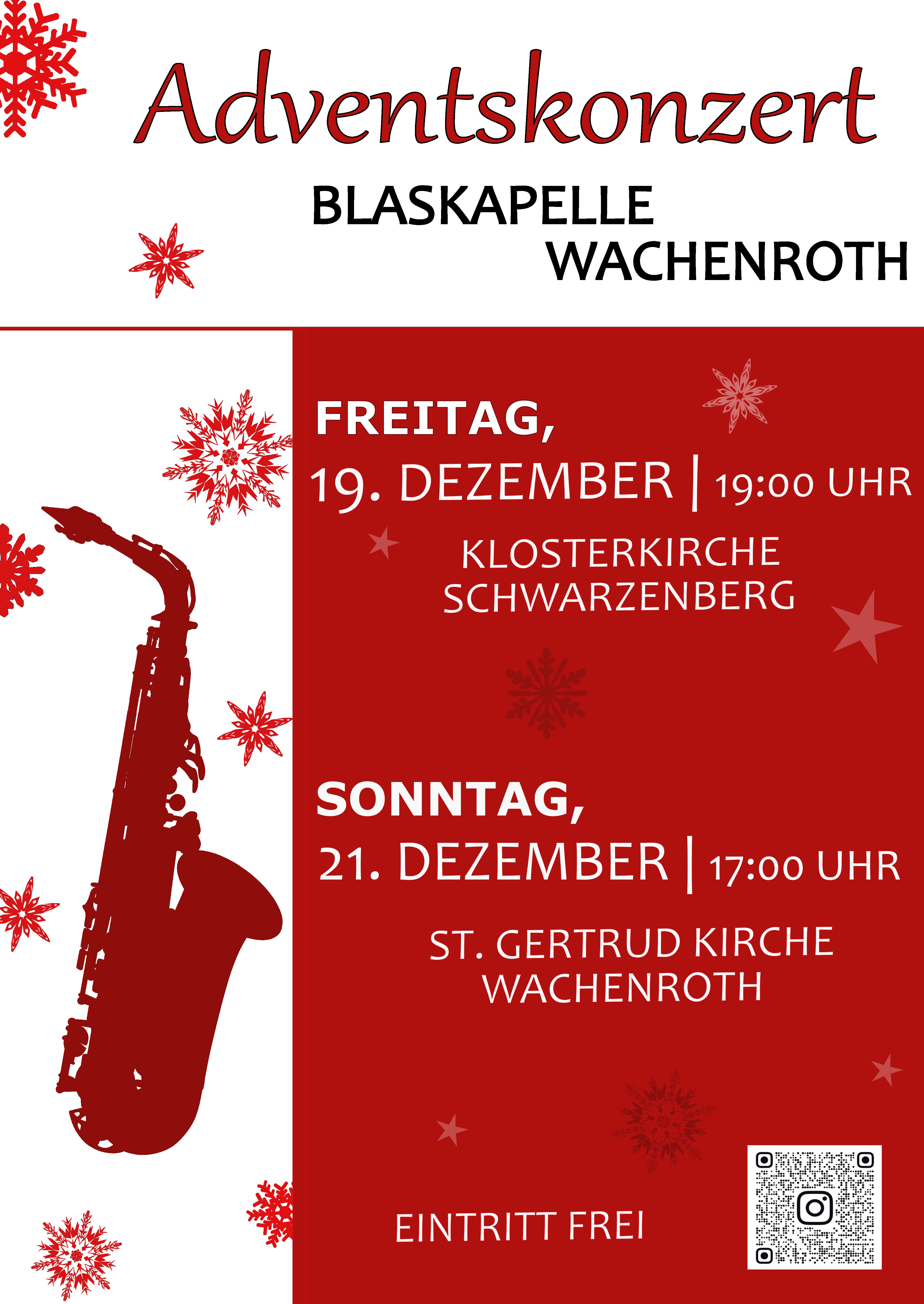 Die Konzerte finden am 19. 12. 25 um 19:00 Uhr in der Klosterkirche in Schwarzenberg und am 21. 12. 25 um 17:00 Uhr in der heimischen St.-Gertrud-Kirche in Wachenroth statt.